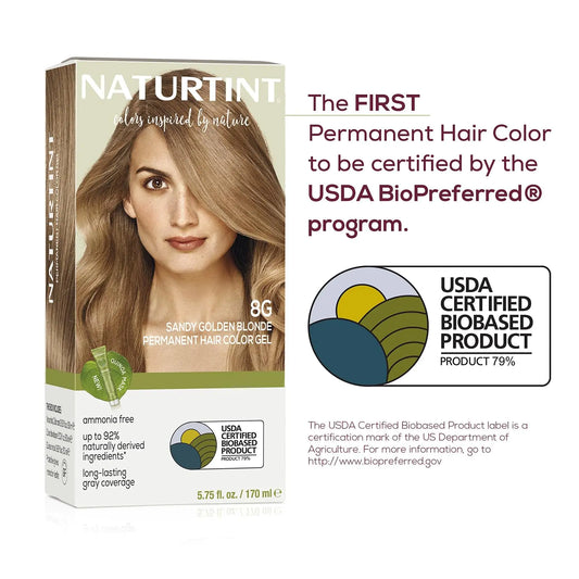 Naturtint Permanent Hair Color 8G Sandy Golden Blonde (Pack of 6), Ammonia Free, Vegan, Cruelty Free, up to 100% Gray Coverage, Long Lasting Results