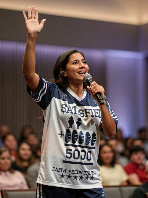 Women Matthew 14 Shirt American Football Tee (Blue & White)